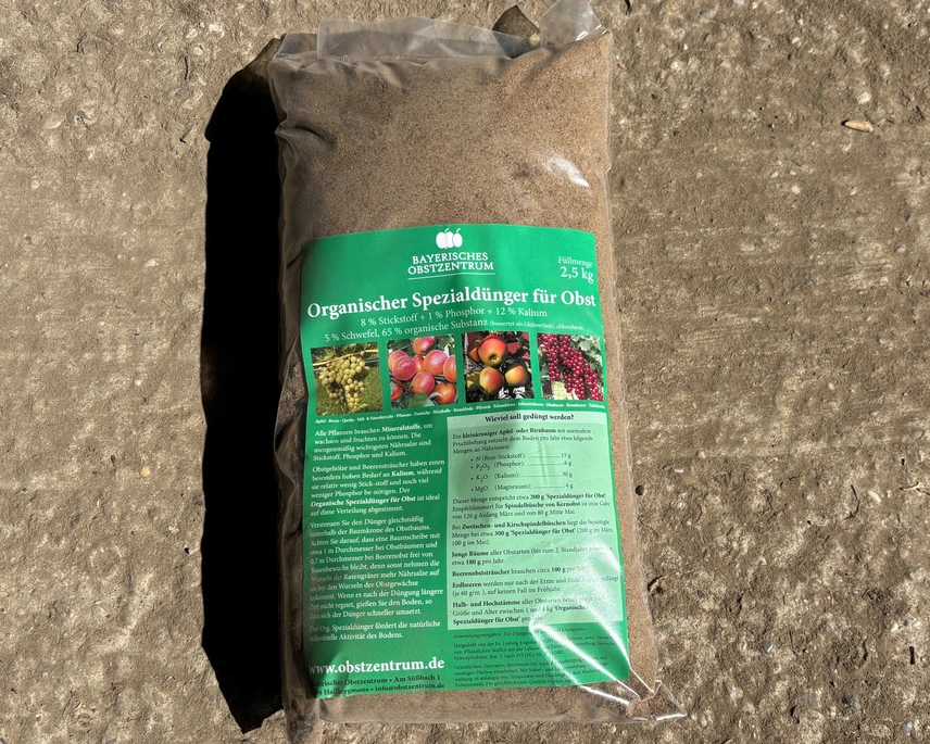 Aufschluss über die im konkreten Fall erforderliche Düngermenge kann nur eine Bodenuntersuchung geben. Der von uns entwickelte Organische Spezialdünger für Obst ist in vielen Fällen bestgeeignet.