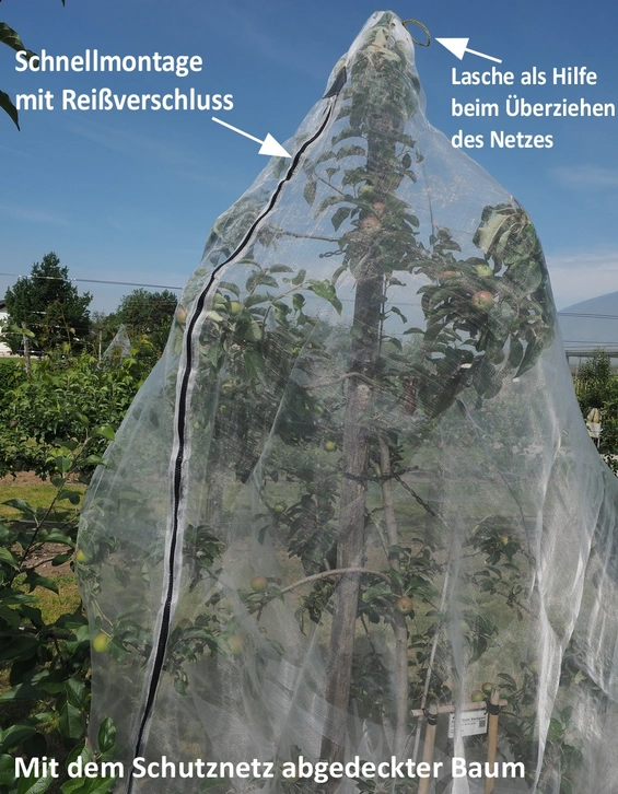 - In unserem Online-Shop können Sie fertig konfektionierte und einsatzbereite Schutznetze mit Reißverschluss bestellen. Bitte beachten Sie, dass es separate Netze für Kernobst (Schutznetz 1), Steinobst (Schutznetz 2) und Beerenobst (Schutznetz 3) gibt. Für jüngere, kleinere Steinobstbäume können Sie das Schutznetz 3 (eigentlich für Beerenobst gedacht, aber mit gleicher Maschenweite wie Schutznetz 2) verwenden. Wird der Obstbaum dann größer, nutzen Sie das Schutznetz 3 für Ihr Beerenobst weiter und kaufen sich bei Bedarf ein Schutznetz 2 dazu.
