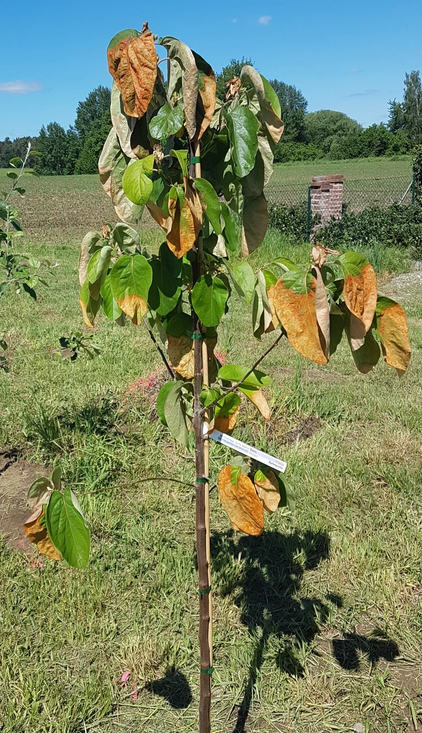 Braune Blätter an frisch gepflanzten Bäumen
