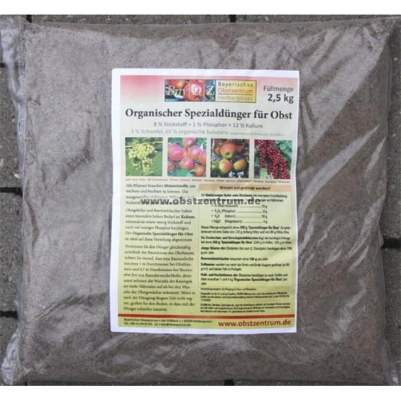 Diese Menge entspricht etwa 200 g des Organischen Spezialdüngers für Obst. Dieser wird vom Bayerischen Obstzentrum empfohlen und im Online-Shop angeboten.