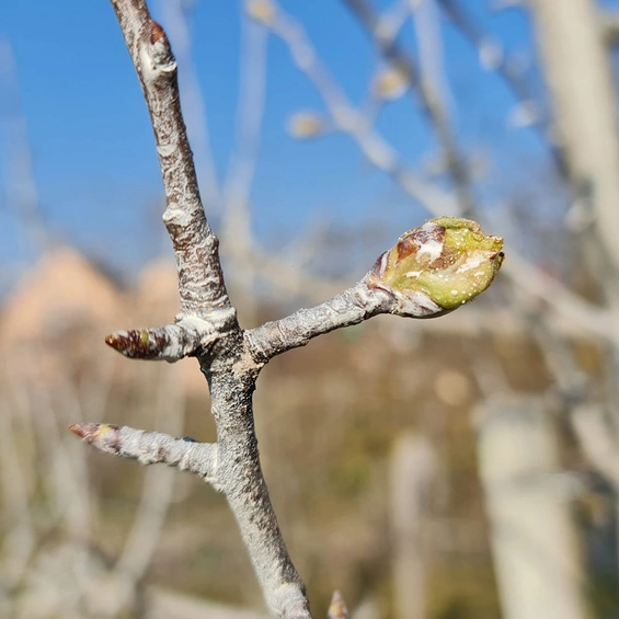 Zum Knospenschwellen und -aufbruch bringen Sie Porzellanerde (Kaolin) als dünne Schicht auf den Trieben aus. Die Porzellanerde ist kein Insektizid, tötet also auch Birnblattsauger nicht ansatzweise ab. Aber: Die feine, dünne Schicht an Porzellanerde macht die Triebe für den Birnblattsauger unattraktiv als Ort für die Eiablage. Vielleicht erkennt das Insekt die Triebe gar nicht mehr als Wirtspflanze, weil sie von der Prozellanerdeschicht vor ihm sozusagen „versteckt“ werden.