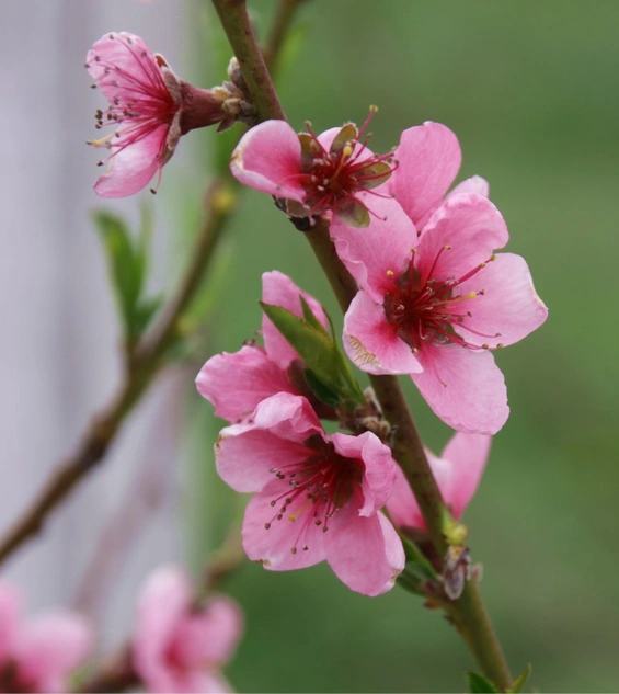Im Gegensatz zu Aprikosen-, die sehr empfindlich sind, sind Pfirsichbäume fast als robust anzusehen. Sie blühen zwar früher als Äpfel oder Birnen, aber spät genug, um in den meisten Jahren auch in unseren Breiten eine reiche Ernte heranreifen zu lassen. Die rosafarbenen Blüten, die sich im April entfalten, leuchten weit über den eigenen Garten hinaus und künden vom anbrechenden Frühling. In der Karwoche geschnitten, öffnen sich die Blütenknospen an Pfirsichzweigen bis zum Ostertag und verwandeln das Haus in eine farbenprächtige Oase. Die lanzettförmigen Blätter des Pfirsichbaums verleihen ihm auch ohne Fruchtbehang einen besonderen Charakter. Und die heranreifenden Früchte geben einen Vorgeschmack auf den zu erwartenden Gaumenschmaus.