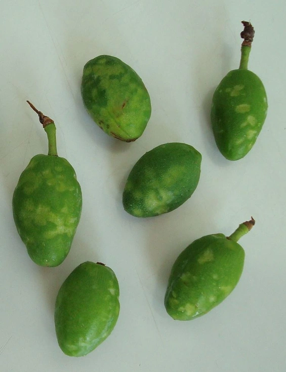 Auch Früchte können von Weichhautmilben befallen und geschädigt werden. Obenstehend sind die Symptome an jungen Früchten zu erkennen. An älteren Bäumen ist der Befall von Früchten aber sehr selten.